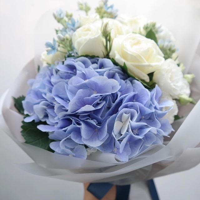 Số lượng hoa lần này so với hôm qua còn tính là bình thường, không ít không nhiều, là một bó hoa cẩm tú cầu màu xanh tím, được gói vô cùng xinh xắn.