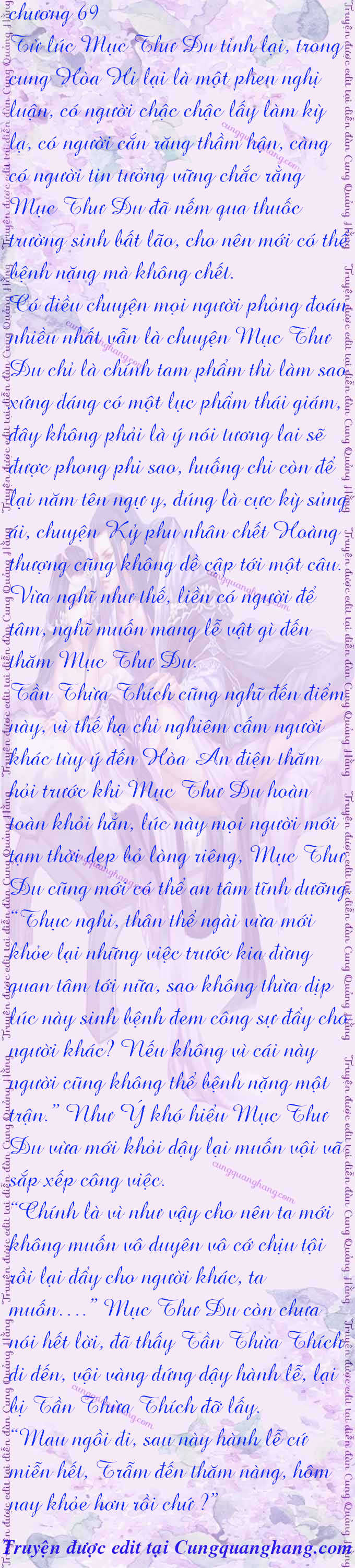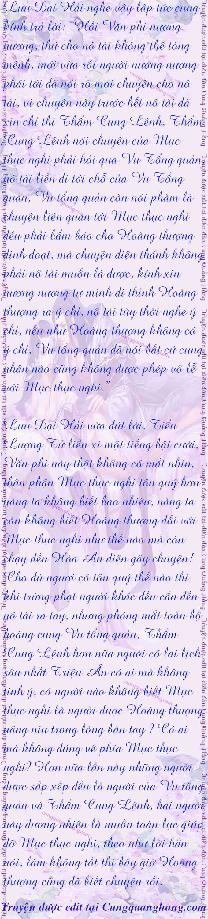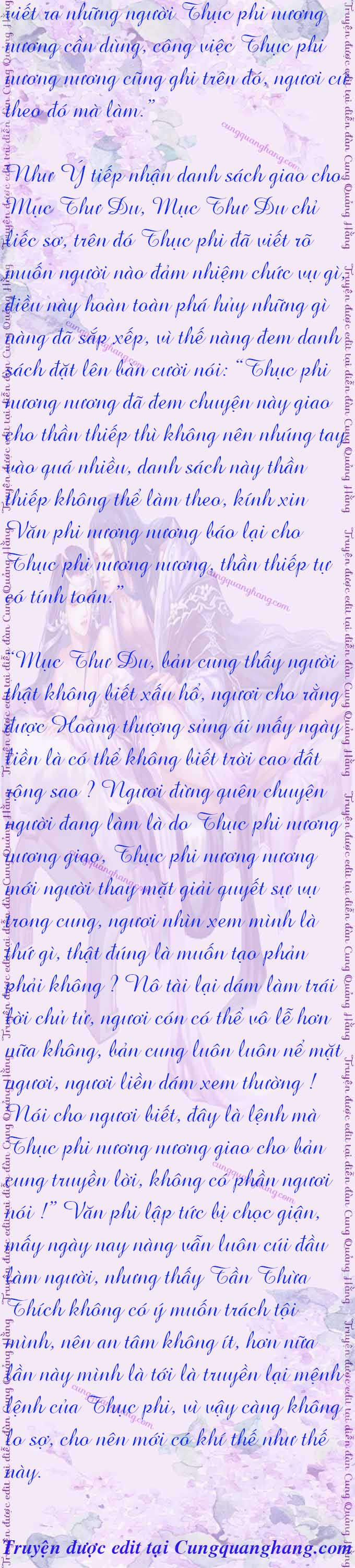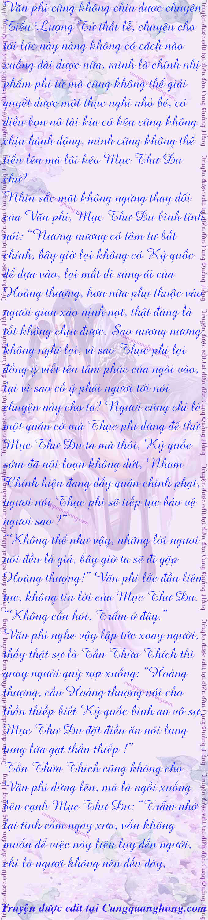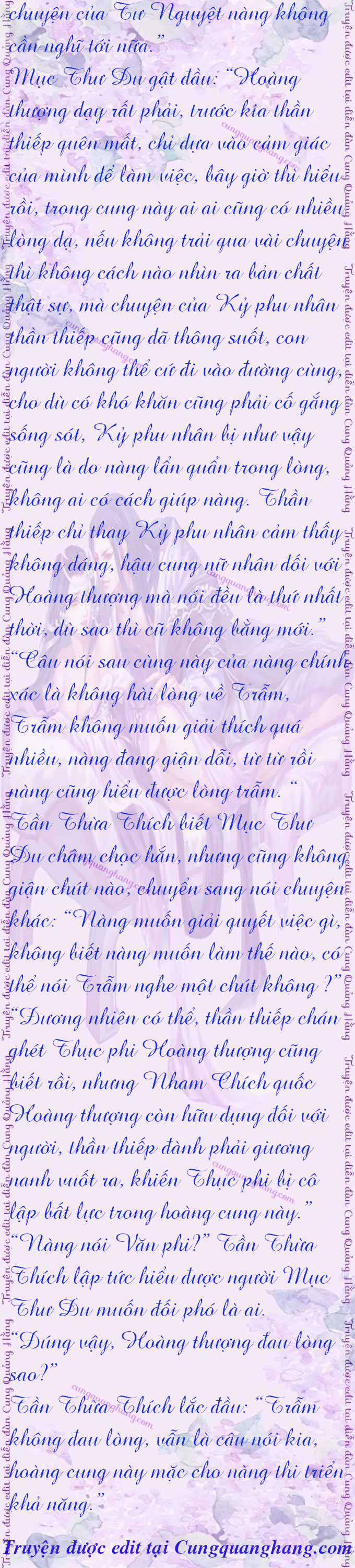 Mấy ngay nay vẻ mặt Mục Thư Du luôn lạnh nhạt rốt cuộc hôm nay sau khi nghe lời nói của Tần Thừa Thích cũng xuất hiện chút dao động, cuối cùng thì là mất bình tĩnh: Hoàng hậu rốt cục cũng muốn tự mình ra tay đối phó nàng sao? Chỉ là lấy Phúc Hân ra làm cái cớ không khỏi có chút quá phận!