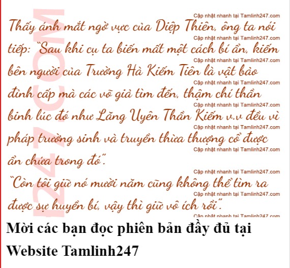 Diệp Thiên lại rót thêm một tách trà, khẽ nói: “Ông chắc thanh kiếm gãy đó là kiếm bên người Trường Hà Kiếm Tiên không?”