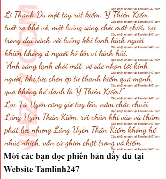 Lạc Tử Uyển cũng sớm đoán ra nên không cố chấp, cô ta chỉ chuyển hướng ánh mắt và nhìn vào thanh kiếm trên tay Lí Thanh Du.