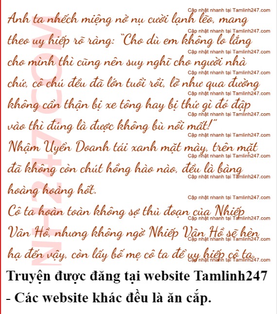 “Uyển Doanh, tôi cũng không muốn gì, chỉ muốn nhắc nhở em rằng, ở cùng với tôi thì còn an toàn hơn chút, không ở cùng tôi, hôm nay em suýt nữa đã bị người ta hắt nước, có lẽ lần sau chính là đổ sơn dội máu!”