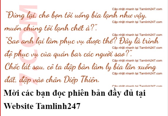 Cũng bởi lòng hiếu kì này mà sau khi ăn tối xong, cô ta lập tức mượn cớ khéo léo từ chối lời mời đến quán karaoke của Ngụy Tử Phó, hẹn vài người chị em tốt đến quán bar mà Diệp Thiên làm việc.