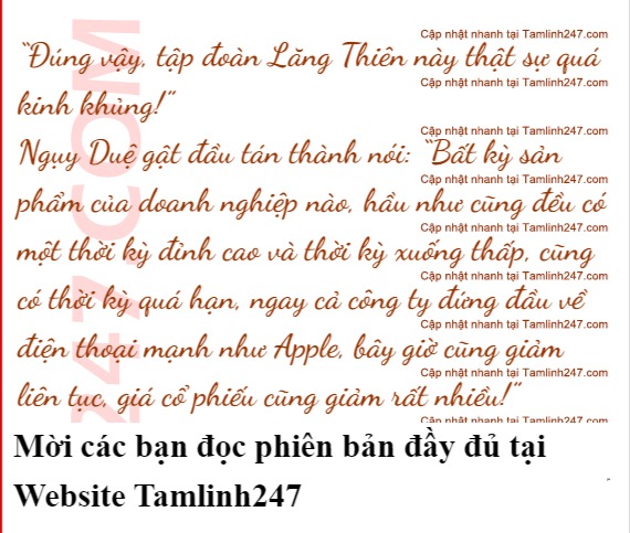 “Nghe nói định giá tập đoàn Lăng Thiên đã vượt qua tổng giá trị của mười công ty hàng đầu thế giới và chín công ty khác cộng lại, chỉ riêng tổng tài sản chi nhánh tập đoàn Lăng Thiên ở Cảng Đảo chúng ta là đã vượt xa mười gia tộc quyền thế chúng ta rồi, thật đáng sợ!”