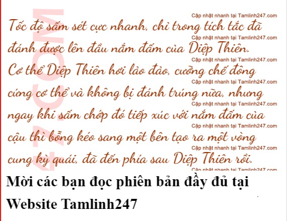Nếu không phải Diệp Thiên có sức mạnh tuyệt đối, đổi thành vương cấp khác thì có lẽ đã bị một cú của sấm sét đánh thành trăm mảnh rồi. Dù là cao thủ vương cấp bình thường e là cũng sẽ biến sắc khi gặp phải đòn tấn công này.