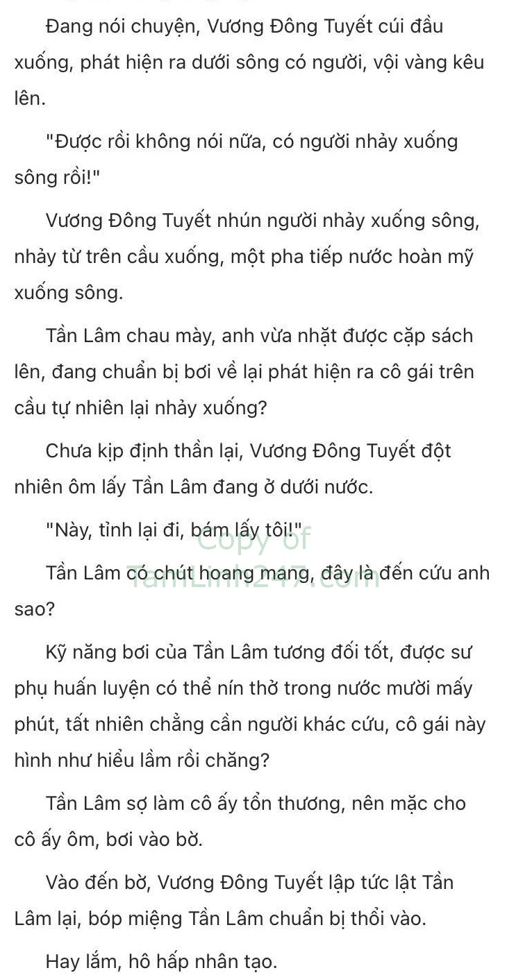 Tần Lâm tiến đến hỏi: "Cậu bé, cháu sao vậy?" Cậu bé chỉ xuống sông rồi nói: "Chú ơi, cặp sách của cháu rơi xuống đó rồi.