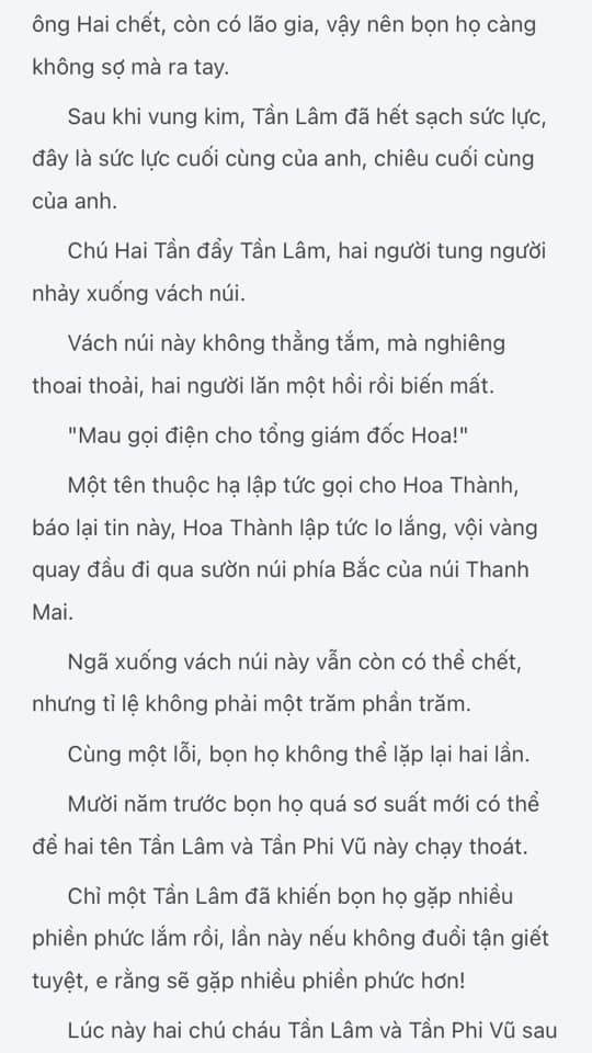 °Nói vớ vần gì vậy, bây giờ cháu như vậy còn hành động được sao, hai chúng ta đồng sinh cộng tửi" Nói xong, chú Hai Tần đầy Tần Lâm xuống núi.