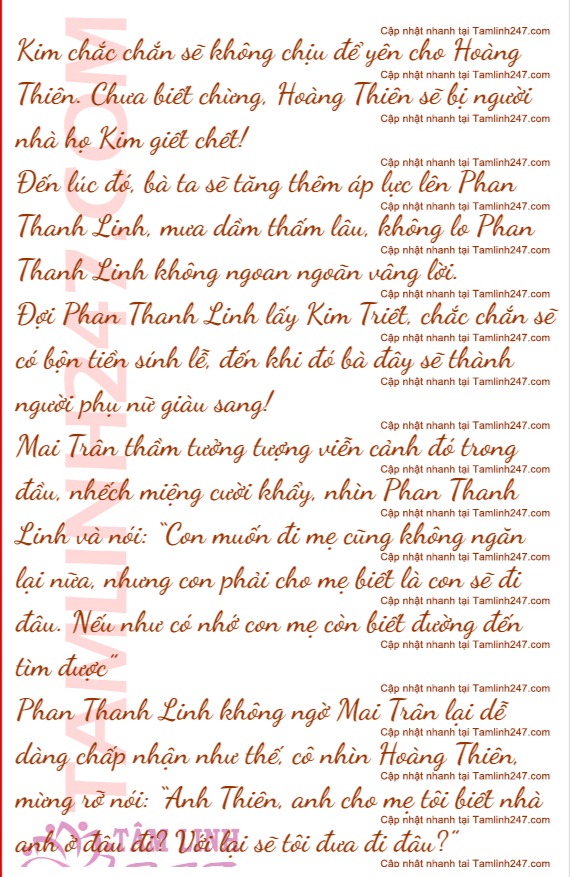 Hoàng Thiên đã chịu hết nổi Mai Trân, anh càng không muốn đôi co với Mai Trân những chuyện này, bèn quay lại hỏi Phan Thanh Linh: “Thanh Linh, cô đã thật sự suy nghĩ kĩ chưa? Muốn đi khỏi nhà đúng không?”