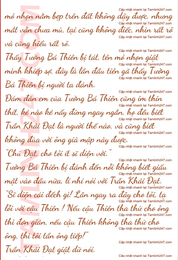 “Chú Đạt, ý tôi không phải thế” “Mẹ kiếp ông là cái loại thượng đội hạ đạp như thế đấy!” Trần Khải Đạt mắng rồi vung tay giáng một củ bạt tai vào giữa mặt Tưởng Bá Thiên. Không khác gì dạy dỗ con cái trong nhà, vả cho Tưởng Bá Thiên chảy máu mũi.