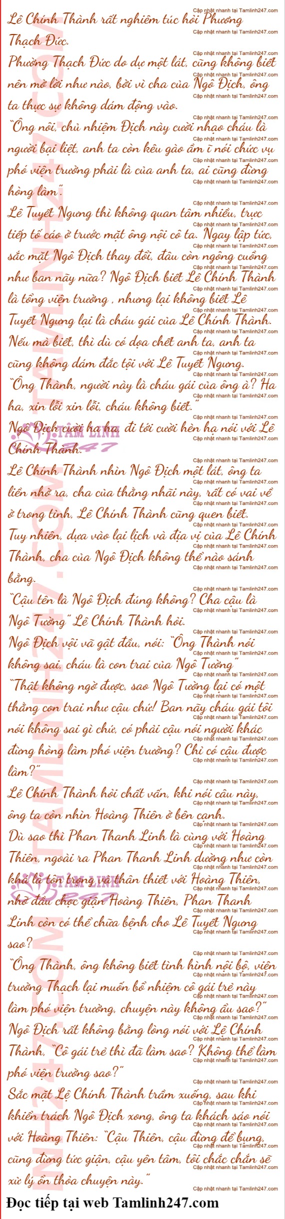 Liên tục nhìn chằm chằm vào Ngô Địch này, Phan Thanh Linh cũng đã nhận ra, người được gọi là chủ nhiệm Địch này có lại lịch không nhỏ, ngay đến cả viện trưởng Thạch còn không dám làm gì anh ta.