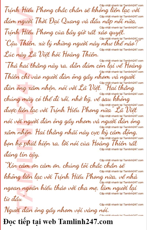 Hoàng Thiên đưa điện thoại cho Thời Đại Quang, anh biết, đám người Thời Đại Quang và đầu nắp nồi, đã bị Trịnh Hiếu Phong vứt bỏ,