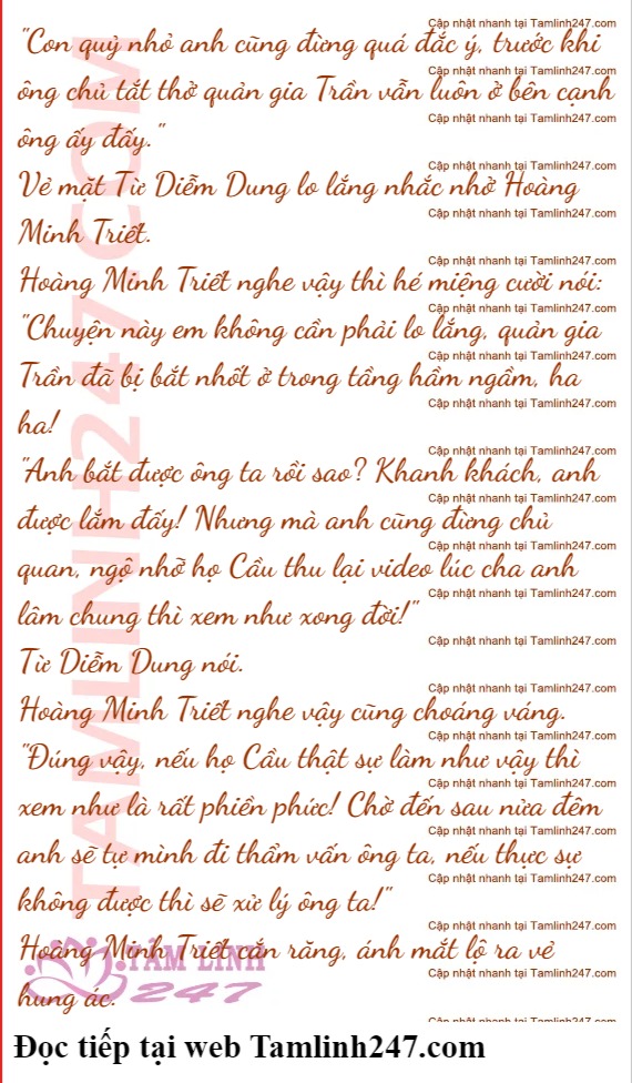"Vâng! Cậu chủ cũng đi đường cẩn thận, đến Hà Nội anh phải chú ý an toàn, tôi có cảm giác sẽ có rất nhiều người muốn hại anh, ôi chao..."