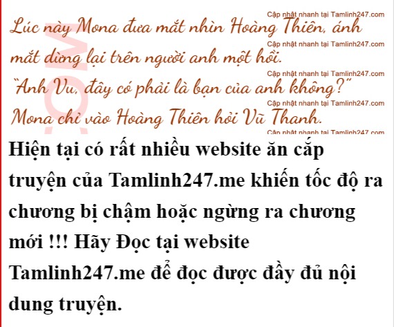 Vũ Thanh cũng không hỏi cặn kẽ Mona đến Phi Thành làm cái gì, vì anh biết những người phụ nữ như Mona chạy khắp thế giới, chắc chắn có nhiệm vụ quan trọng mới đến Phi Thành.