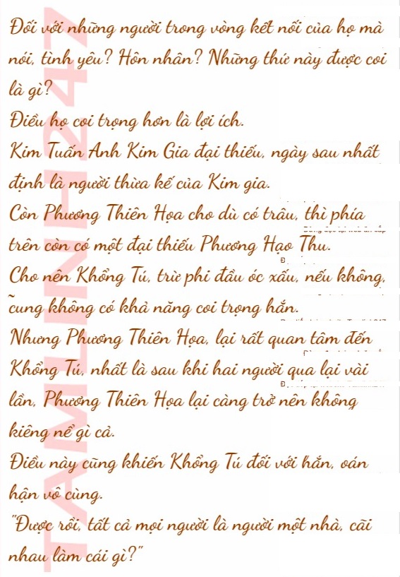“Khổng Tú, ngươi cũng đừng châm ngòi ly gián.” Phương Thiên Họa mỉm cười một tiếng, “Ngươi có nói toạc trời, Kim Đại Thiếu cũng chướng mắt ngươi.”