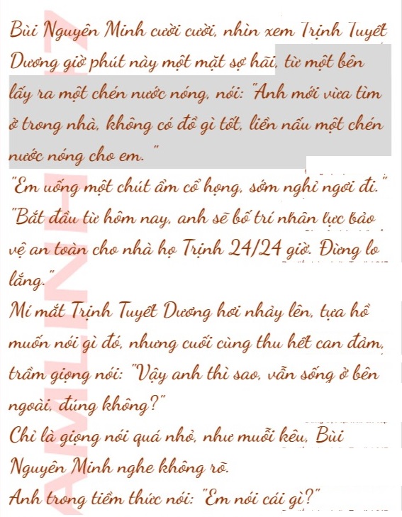 Dường như cảm nhận được ánh mắt hung hăng của Bùi Nguyên Minh, Trịnh Tuyết Dương vẻ mặt ửng hồng, ngay sau đó cô nói nhỏ: “Anh định làm gì?”