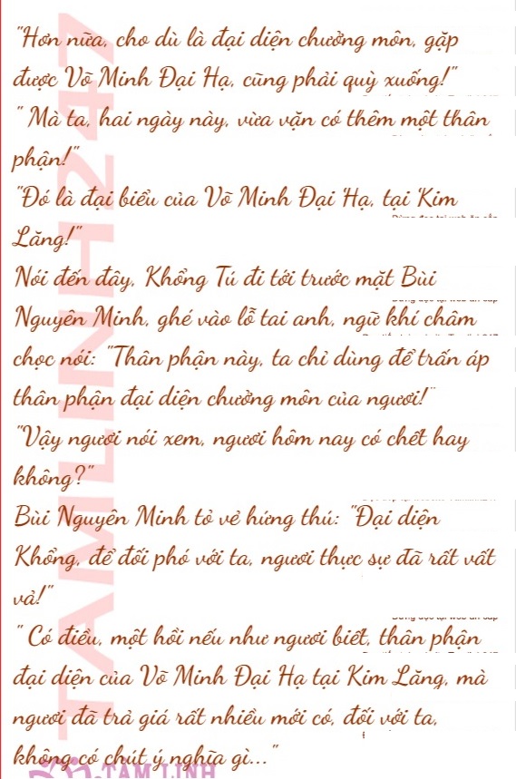 Khổng Tú cười lạnh nói: “Bùi Nguyên Minh, đừng quên, mặc dù ngươi có lệnh bài chưởng môn Tây Nam Thiên Môn Trại trong tay, nhưng thân phận đại diện chưởng môn, là vì lệnh bài mà có!”
