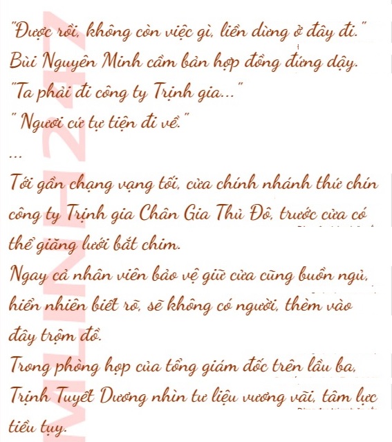 Sau đó, Trương Tích Tuyết kính cẩn đặt bản hợp đồng trước mặt Bùi Nguyên Minh.