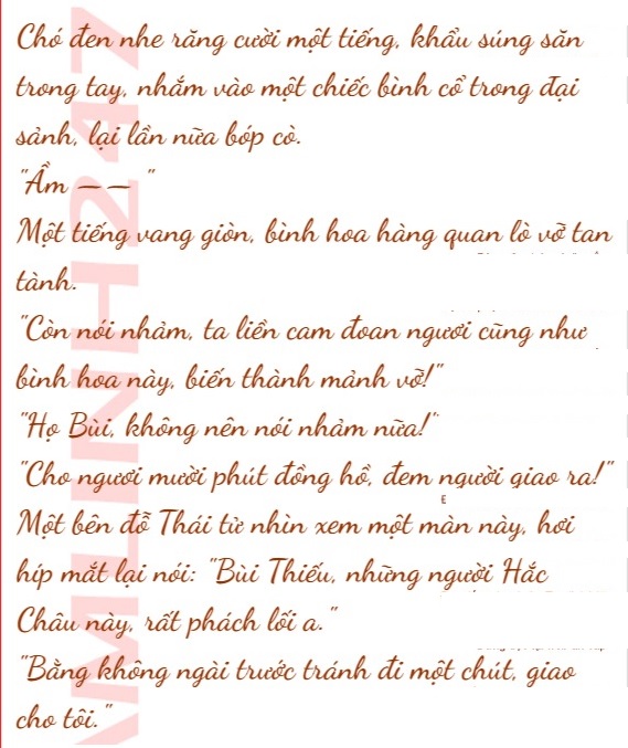 Đi đầu, là một người đàn ông Hắc Châu, trong tay hắn cầm súng săn, dùng ngữ khí nửa sống nửa chín của Đại Hạ, gầm thét: “Họ Bùi, ta là thủ hạ chó đen của đại tiểu thư Karina!”