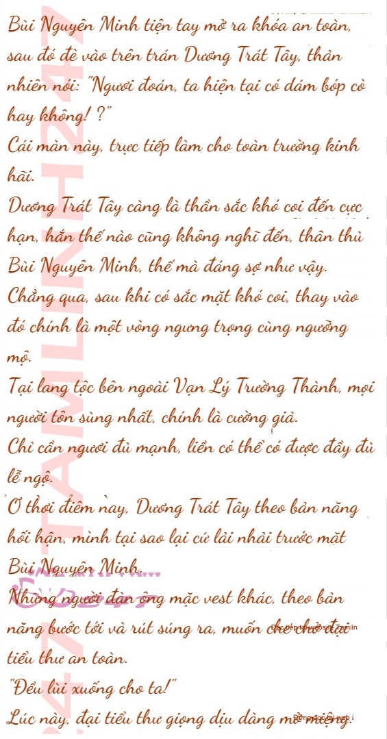 Đang khi nói chuyện, Dương Trát Tây không chút kiêng kỵ lấy ra súng đạn bên hông, sau đó trực tiếp mở khóa an toàn, muốn đem nòng súng đè vào trên trán Bùi Nguyên Minh.