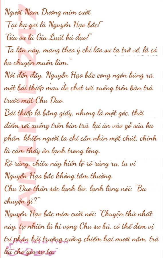Người Nam Dương tươi cười bước tới, mặc kệ Quách Siêu, Bùi Nguyên Minh và những người khác đang có mặt, ngồi đối diện với Chu Dao, mang trên mặt giống như cười mà không phải cười.