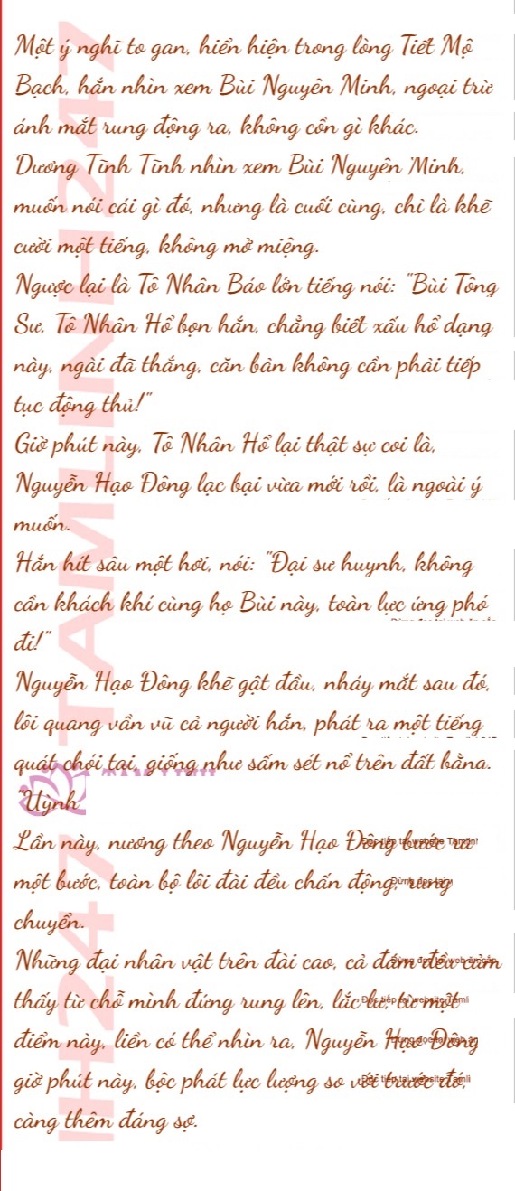 Một mặt khác, đã Tô Nhân Hổ cùng Nguyễn Hạo Đông, chẳng biết xấu hổ như thế, như vậy Bùi Nguyên Minh, cũng không để ý, làm cho hai người này mất hết thể diện.