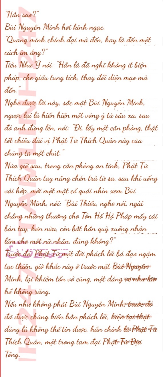 Chiều ngày thứ ba, Tiêu Như Ý một mặt cổ quái, đi vào bên người Bùi Nguyên Minh, thấp giọng nói: “Bùi Thiếu, Phật Tử Thích Quân Tiểu Phụng Tự, cầu kiến.”