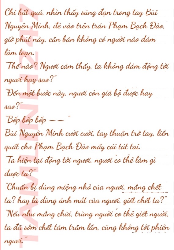 Bùi Nguyên Minh một bên ngắm nghía khẩu súng, vừa cười cười đi lên phía trước, đi tới trước mặt Phạm Bạch Đào.