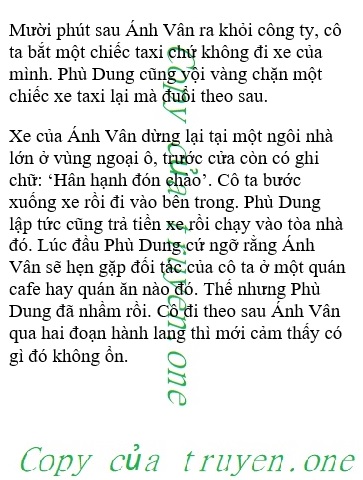 Tim Phù Dung đập liên hồi, phía sống lưng lạnh toát. Hình như cô theo dõi không đúng người rồi. Phù Dung không ngờ Ánh Vân lại có thể giao du với bọn người nguy hiểm như vậy. Cô vội vàng quay người, cắm đầu chạy ngược lại về phía cửa ra khi nãy. Việc theo dõi này cô làm không nổi nữa rồi.