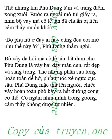 “Cám ơn cô nhé. Chi phí tôi sẽ thanh toán khi trả phòng ạ’, Phù Dung mỉm cười nói rồi vội vàng nhận lấy. Cô quên mất luôn việc đã nhờ đặt chiếc váy dạ hội cho tối ngày hôm nay.
