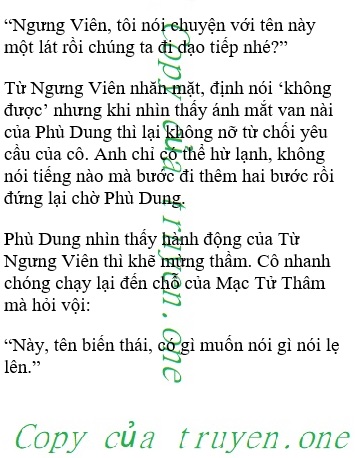 Ánh mắt Từ Ngưng Viên đầy vẻ cảnh cáo. Phù Dung dường như có thể nhìn thấy cả dòng chữ ‘chó dữ cấm chọc’ được dán trên người của anh ta luôn vậy.