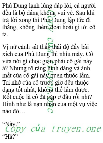 Nữ cảnh sát xoa xoa cằm, hơi suy tư mà nhìn Phù Dung hỏi. Trong đầu cô vẫn có ấn tượng lờ mờ với bóng dáng quật cường cùng đôi mắt lạnh lẽo của người con gái này.