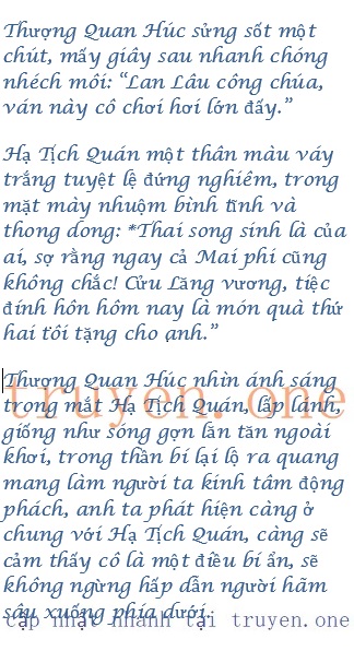 Lúc này Thượng Quan Húc hạ giọng nói bên tai Hạ Tịch Quán: “Lan Lâu công chúa, đứa bé trong bụng Mai phi rốt cuộc của ai?”