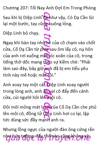 Có Dạ Cần mim môi, đôi mắt đen trong veo như mực sâu không đáy: “Anh chưa từng chạm vào phụ nữ, em có phải cũng thế không, chưa từng được đàn ông đụng vào?”