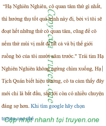 Hạ Tịch Quán cầm ly rượu nhấp một ngụm rượu đỏ, lúc này Hạ Nghiên Nghiên đi đến, sắc mặt u ám thấp giọng hỏi: “Quán Quán, sao cô quen được hiệu trưởng? Có phải cô đang giấu giếm tôi chuyện gì không?” Hạ Tịch Quán biết giờ trong lòng Hạ Nghiên Nghiên nhộn nhạo khó chịu, dù sao thì giáo dục và y học là niềm tự hào nhất của cô ta, cũng là nền tảng của cô ta, một khi ánh hào quang này mất đi, cô ta sẽ vô dụng.