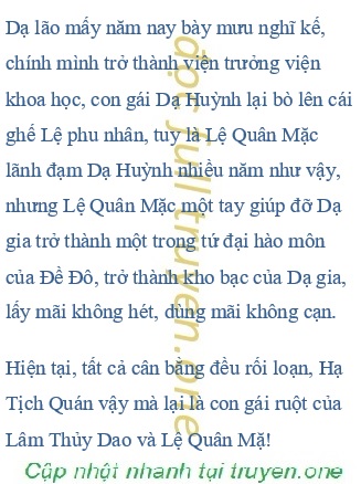 Dạ Huỳnh lại không ngốc, thân thế Lệ Yên Nhiên là bí mật sống để dạ thác mang theo, bà ta gật đầu: “Bố, miệng con kín mít gió không lọt, bố yên tâm đi, nhưng chuyện Hạ Tịch Quán vô cùng khẩn cấp, Lục Hàn Đình Lục Tử Tiễn Từ Thiếu Nam, đám thiên chỉ kiêu tử này đều bị con nhỏ đó cho bùa mê thuốc lú cả rồi, càng lưu lại về sau càng khó đối phó.”