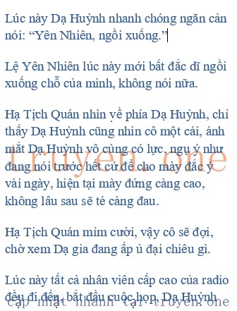 Lệ Yên Nhiên thích nhất được ca ngợi, chỉ cần nghe được ca tụng, cô ta liền muốn phẩy cánh bay lên trời, cô ta khiêu khích nhìn về phía Hạ Tịch Quán đối diện: “Mọi người đừng khen tôi, vẫn nên nhanh chóng xem thử tỷ lệ nghe đài của Đài D đi! Nói không chừng sẽ có kinh hỉ gì đấy!”