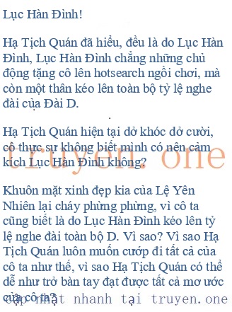 *Yên Nhiên tiểu thư lập kỷ lục tỉ lệ nghe cao nhát của đài chúng ta, xem ra Hạ Tịch Quán đã lập nên kỷ lục thấp nhất rồi ấy nhỉ?”