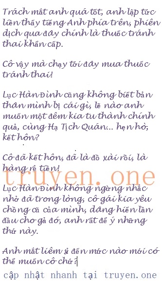 Hạ Tịch Quán tiếp tục nói: “Nhưng Lục tổng ơi, anh đừng quên đấy, tôi đã kết hôn, không phải anh đã cảnh cáo tôi sao, bảo tôi đừng có mơ, anh sẽ không đổ vỏ cho thằng khác.”