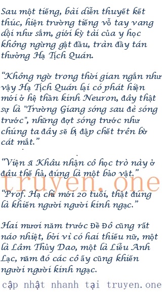 Màn diễn thuyết của Hạ Tịch Quán là tiết mục áp chót, cũng là tiết mục được mọi người mong đợi nhất, viện sĩ Khâu cười nói: “Tịch Quán, đi đi con, đừng lo lắng, đây là sân khấu của con.”