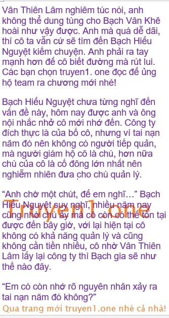 Nhìn bộ dạng không nói nên lời của Bạch Hiểu Nguyệt, Vân Thiên Lâm không đành lòng để cô nhớ lại nữa. Ở dưới bàn, anh nắm lấy bàn tay cô thật chặt, không sao, về sau anh sẽ là người luôn bên cạnh em, sẽ bù đắp tình cảm cho cô thiếu thốn những năm qua.