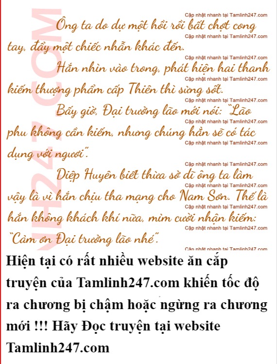Diệp Huyên mới bật cười: “Ta dĩ nhiên sẽ nể mặt Đại trưởng lão rồi. Nhưng nhẫn chứa vật của y phải thuộc về ta”.