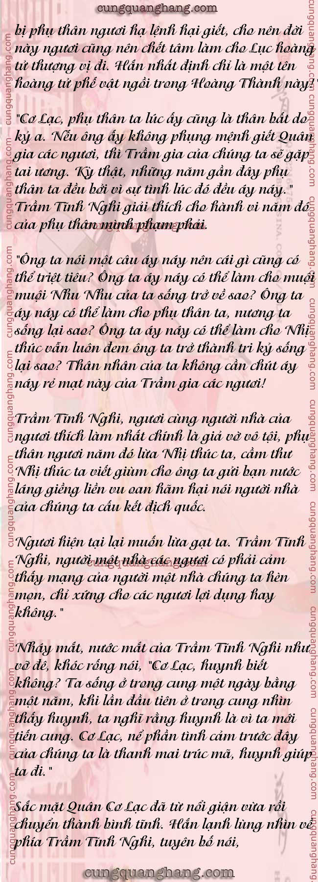 Mộ Dung Ôn Trạch và Mộ Dung Nhược Hồng cũng đích thực "chiếu cố" nội thị và ma ma phụ trách chân tuyển trong cung. Chỉ là, Đường Vân Nhiễm qua mấy vòng nầy vẫn đều bị giữ lại.