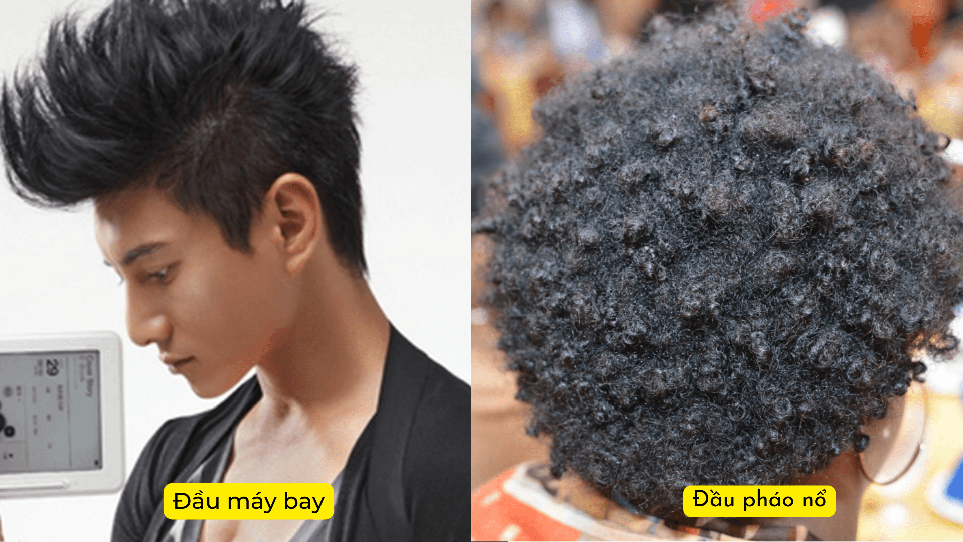 Gội đầu xong ngồi xuống ghế, thợ cắt tóc nhai nhai chiếc kẹo cao su, quen miệng hỏi thăm: "Muốn cắt đầu máy bay hay đầu pháo nổ?"