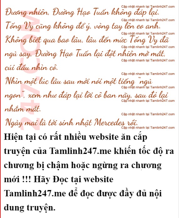 Đường Hạo Tuấn đắp chăn cho cô, một lần nữa nhắm mắt lại: “Định ngủ rồi, nhưng tiếng bước chân của em đánh thức anh.”