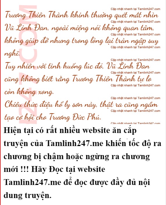 Thậm chí, khi đối mặt với Trương Thiên Thành, trong ánh mắt cô thoáng qua một chút lạnh lẽo: “Tôi biết chuyện của Vũ Phong Toàn là do anh làm, cho dù anh có mục đích gì thì tôi cũng sẽ không cảm ơn anh đầu, bởi vì anh đã khiến tôi bỏ lỡ cơ hội bảo thù cuối cùng”