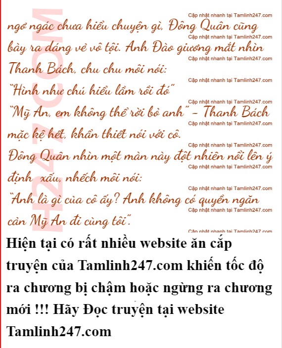 Mỹ An thở ra một hơi thật dài, nghe được câu này của Đông Quân cô cảm thấy cả người nhẹ bỏ được gánh nặng. Linh Chi nói bọn họ nợ tình cảm của quá nhiều người nên không thể hạnh phúc, giờ nghe được Đông Quân nói vậy Mỹ An lại có niềm tin hơn vào cô và Thanh Bách..