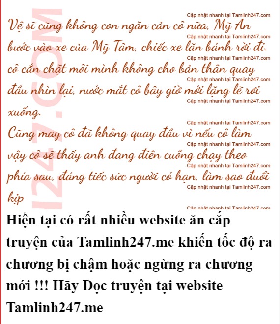Mỹ An hít sâu một hơi, bước qua anh. Trong lòng cả hai đều đang không ngừng thét gào, tình yêu họ dành cho nhau sẽ không chết đi mà vì chuyện này càng trở nên âm ỉ. Anh biết bản thân không giữ được cô nữa, cũng biết
