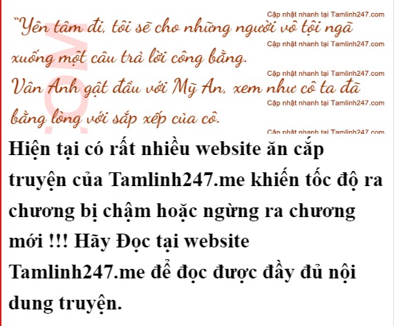 “Chuyện thuyết phục Vân Anh cứ để em đi” - Mỹ An nhẹ giọng - “Em đã dứt khoát với Thanh Bách rồi, ân oán năm đó đến lúc phải tính cho rõ ràng rồi”