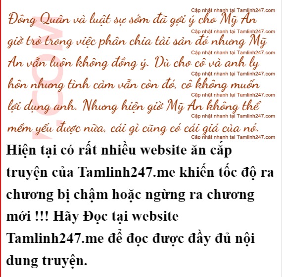 Mỹ An ghì chặt hai nắm tay, lời này của anh khác nào vạch rõ ranh giới với cô rằng anh sẽ không bao giờ đứng về phe cô. Mỹ An vẫn luôn đắn đo một chuyện mấy hôm nay không muốn làm tới cùng nay nghe anh nói vậy cô càng kiên quyết.