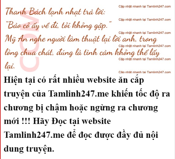 Mỹ An đứng bên ngoài, tránh mặt mọi người, cô nhờ người làm vào thông báo một tiếng cho Thanh Bạch.