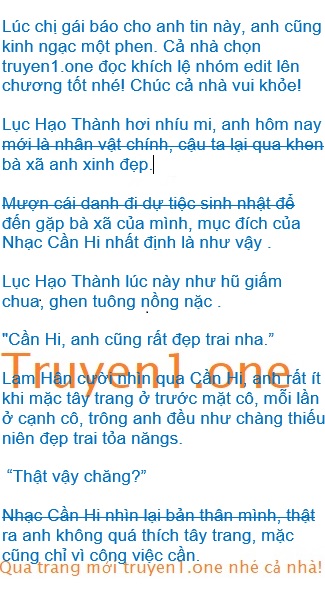 Nhạc Cần Hi mang theo quà đi vào, trực tiếp đi đến trước mặt Lục Hạo Thành, ánh mắt ngả ngớn nhìn qua anh “Sinh nhật vui vẻ!”